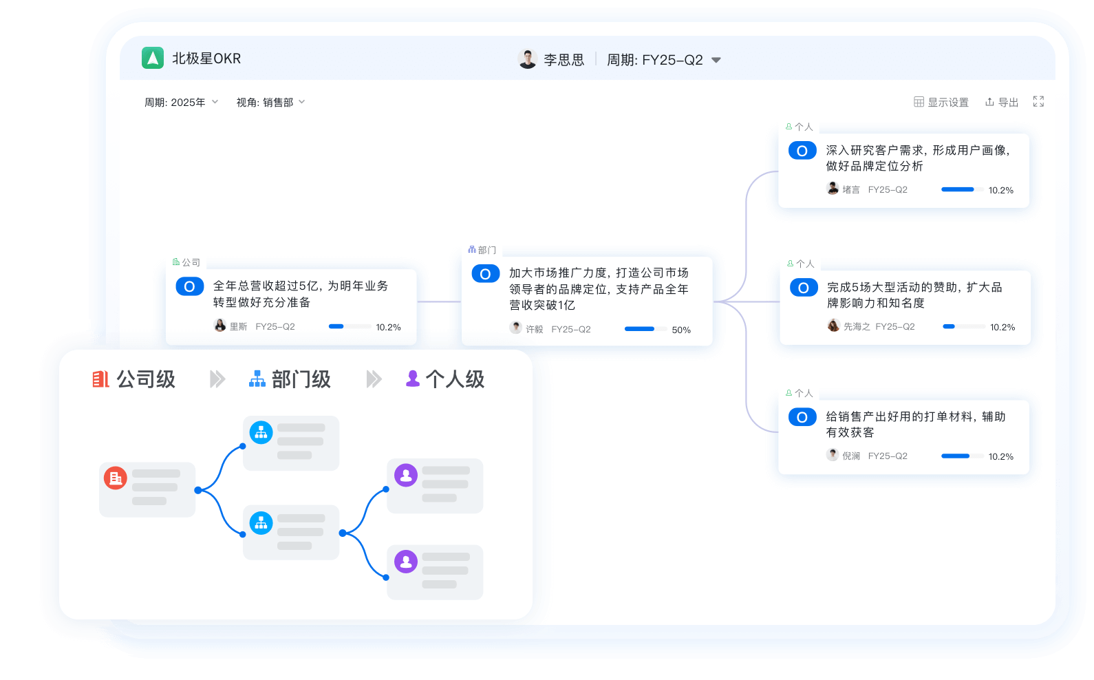 幫助企業(yè)將戰(zhàn)略目標(biāo)細(xì)化為具體可執(zhí)行的關(guān)鍵成果, 讓團(tuán)隊(duì)成員在共同目標(biāo)下協(xié)同合作,實(shí)現(xiàn)目標(biāo)落地